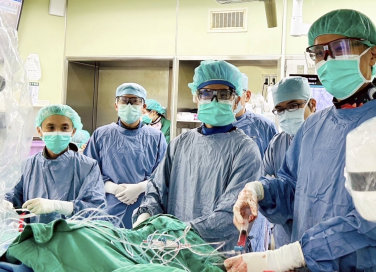 一名 75 歲女性因呼吸困難和胸悶不適,由外院轉診到林口長庚就醫。醫師在進行心臟聽診時發現有明顯的雜音。進一步的胸部 X 光和電腦斷層掃描檢查顯示,她的心臟位於胸腔右側,與一般人的心臟偏左側位置完全相反,這種罕見的情況稱為右位心臟。更特別的是,她的主動脈瓣膜結構異常,只有兩片瓣膜,不像正常人有三片瓣膜,醫學上稱為二瓣主動脈瓣狹窄 (bicuspid aortic valve stenosis)。心臟超音波檢查還發現瓣膜已經嚴重鈣化,造成血液流通受阻。這種複雜的解剖結構讓治療難度大幅提升。經過心臟瓣膜醫療團隊詳細評估後,決定為病人進行經導管主動脈瓣膜植入手術(Transcatheter aortic valve replacement,TAVR)。手術過程順利,病人的胸悶和氣喘症狀獲得明顯改善,術後 5 天康復出院,充分展現了這項新技術的優勢。