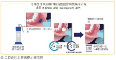 研究成果建立了冷凍槍治療的標準流程 長庚醫院這項研究不僅建立了冷凍槍治療的標準流程,更為全球類似病人提供一項具科學實證的新選擇,也彰顯台灣醫療在口腔醫學領域的國際影響力。